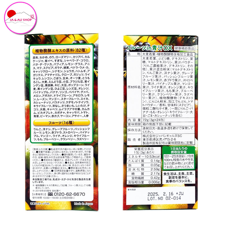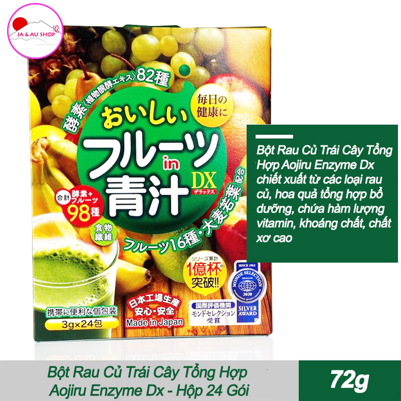 ➢ Bột Rau Củ Trái Cây Tổng Hợp Aojiru Enzyme Dx chiết xuất từ 82 loại rau củ và 16 loại trái cây bổ dưỡng, chứa hàm lượng vitamin, khoáng chất, chất xơ cao và cơ thể có thể dễ dàng hấp thụ.