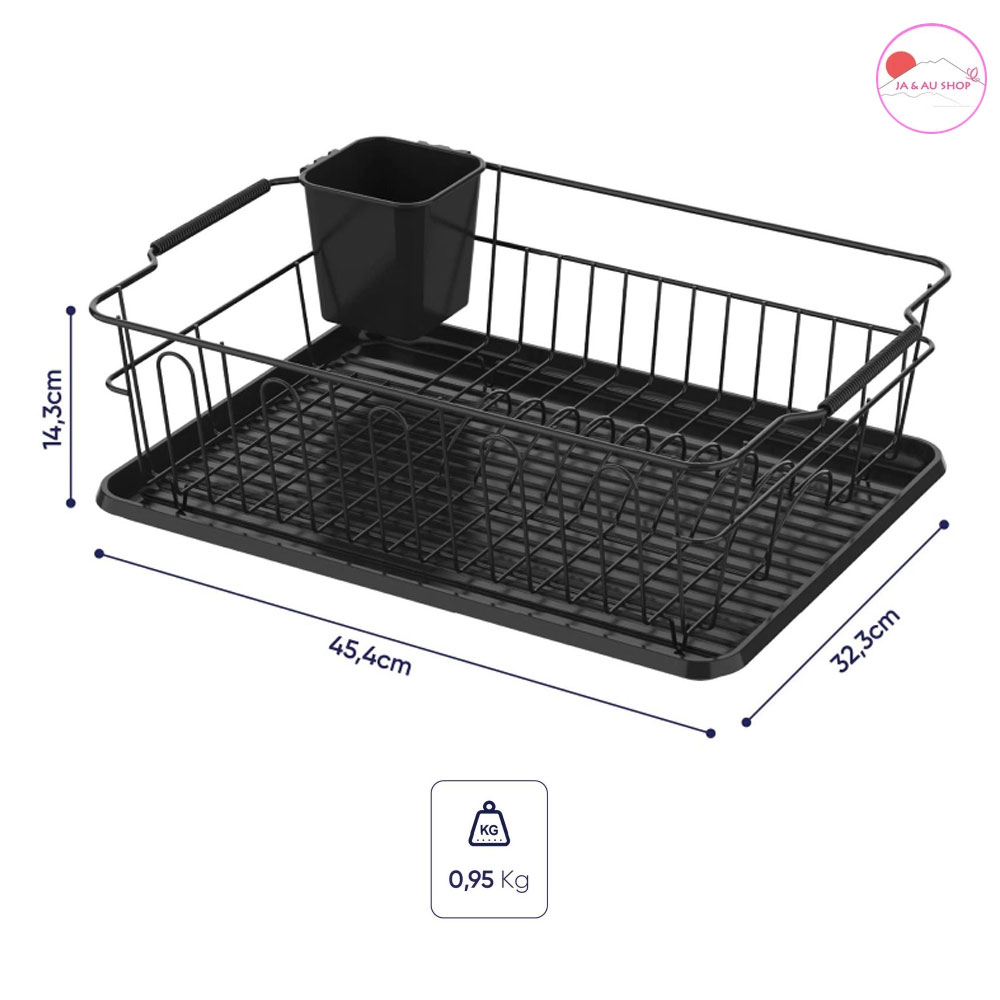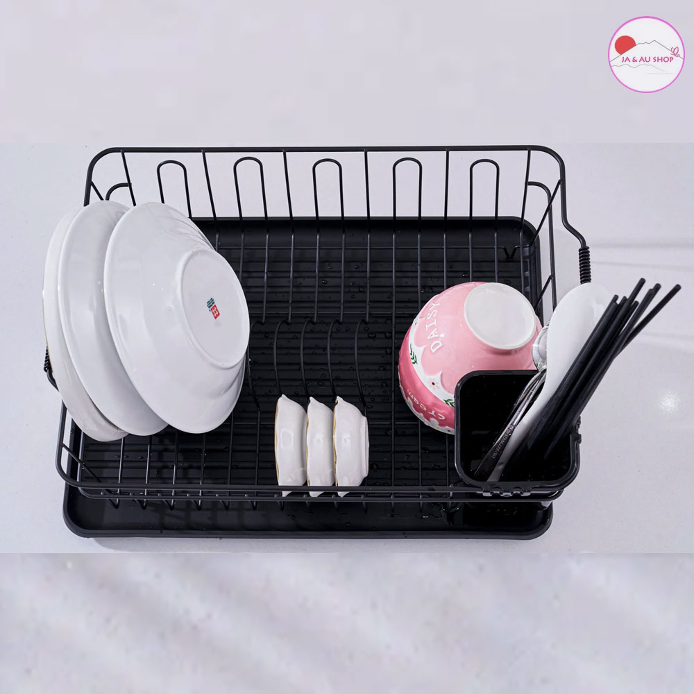 - Vật liệu: Thép carbon (khung giá), Nhựa PP (khay hứng nước, giá thìa dĩa, giá úp cốc)