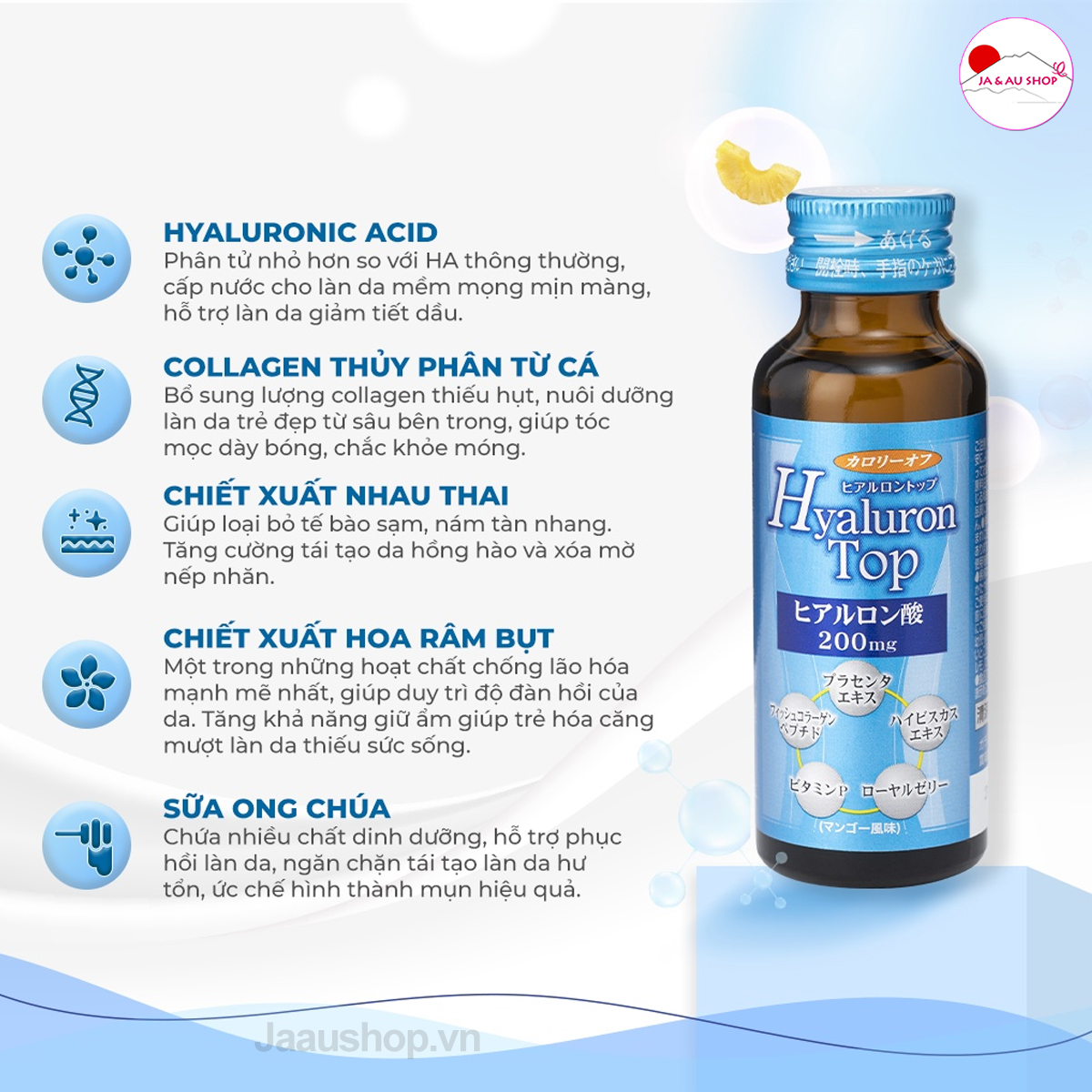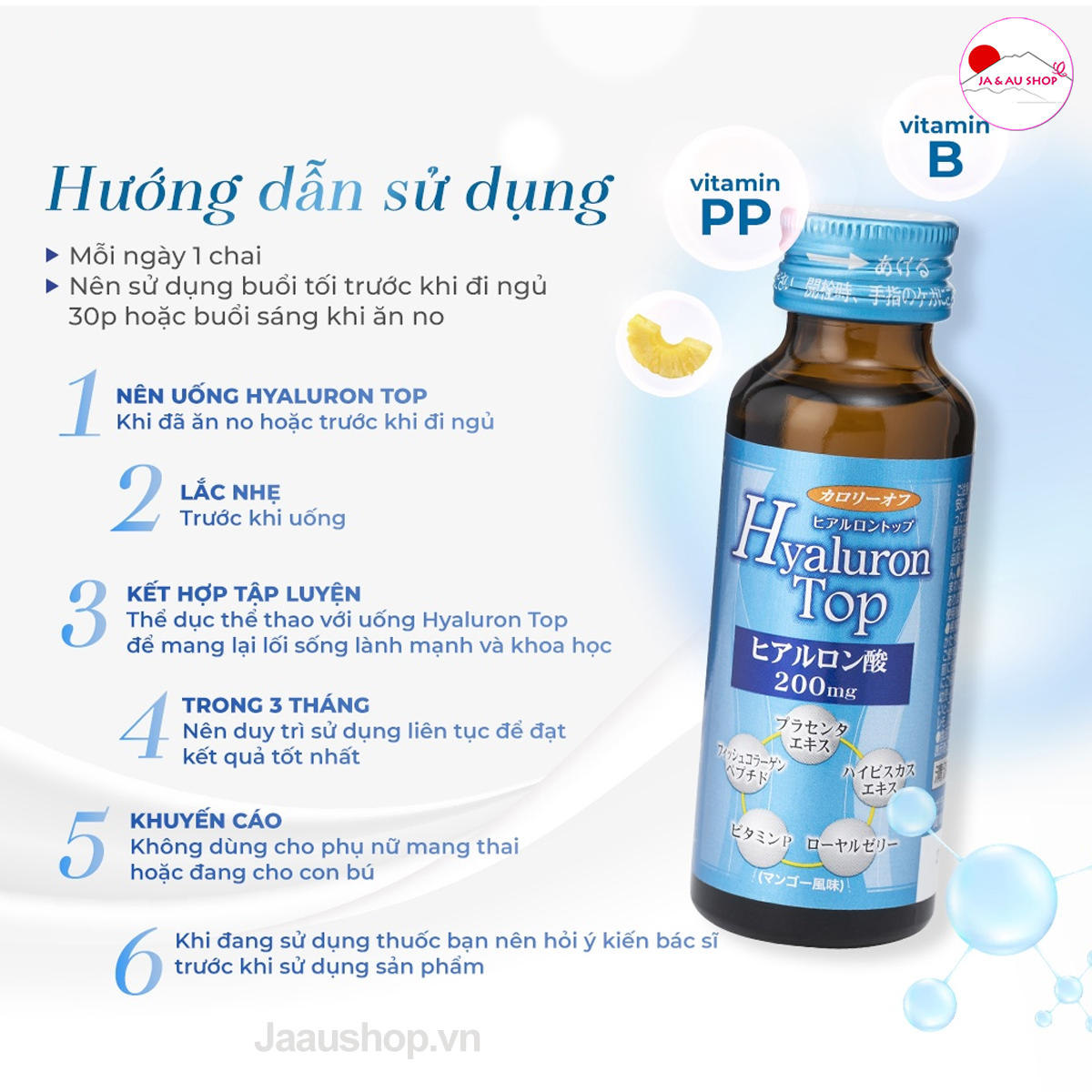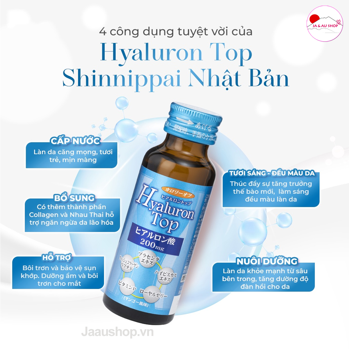 Nước uống cấp nuớc Hyaluron Top SHINNIPAI Nhật Bản 200mg Hộp 10 chai x 50ml giúp da săn chắc, giảm tiết dầu