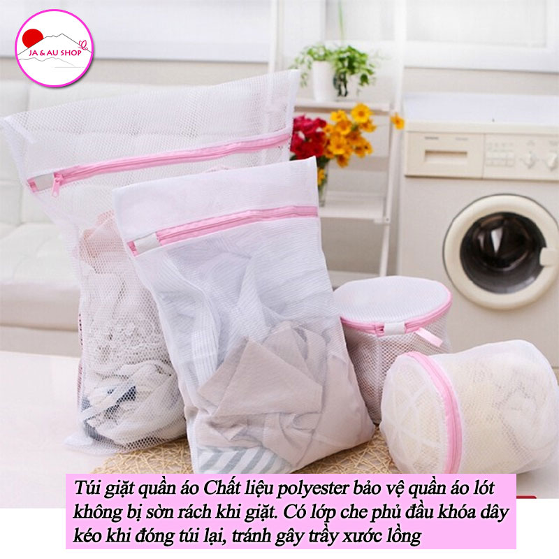 ➢ Túi giặt quần áo Chất liệu polyester bảo vệ quần áo lót không bị sờn rách khi giặt. Có lớp che phủ đầu khóa dây kéo khi đóng túi lại, tránh gây trầy xước lồng máy.